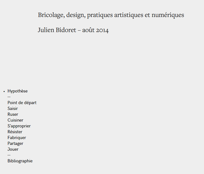 Bidoret, J. (2014). Bricolage, design, pratiques artistiques et numériques